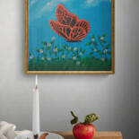 Big Butterfly“ zeigt einen leuchtend orangefarbenen Schmetterling, der frei über einer sanft verschwimmenden, naturhaften Kulisse schwebt. Der kontrastreiche Hintergrund in Blau- und Grüntönen lässt die zarten Flügel hervorstrahlen und verleiht dem Motiv eine ruhige, traumhafte Atmosphäre. Das Werk verbindet Leichtigkeit, Freiheit und die stille Kraft der Natur – ein Moment des Innehaltens zwischen Realismus und malerischer Intuition.